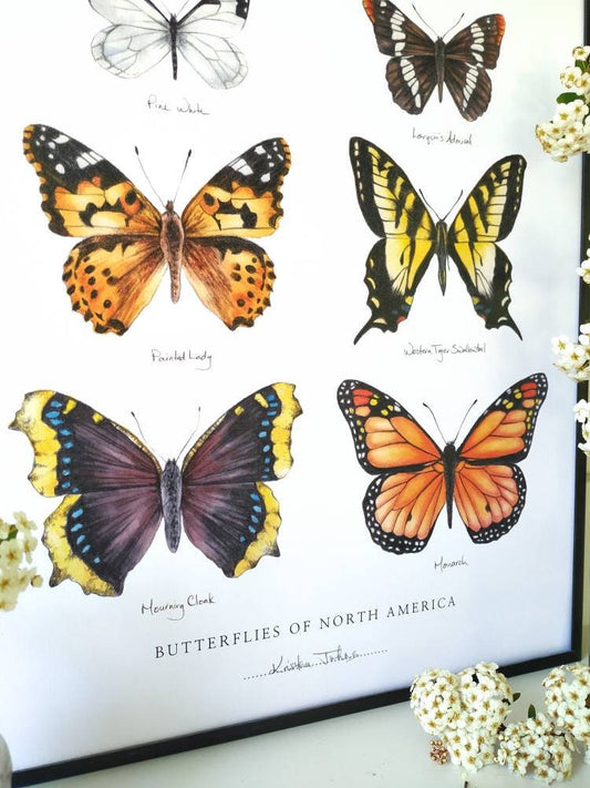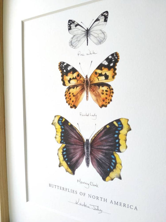 Butterflies of North America (pine white, painted lady & mourning cloak) - Art Print