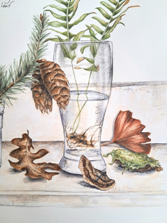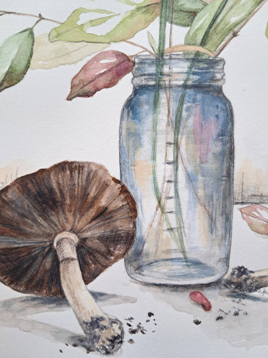 Fall bouquet with mushrooms - original painting, 9x12 inches