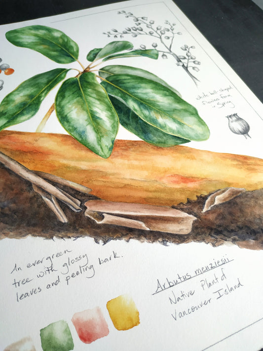 Arbutus Tree Study - original botanical painting, 11x14inches