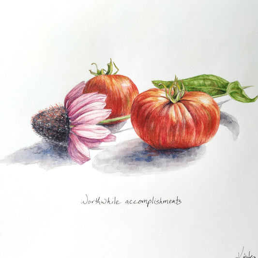 Homegrown Tomatoes and Echinacea - original painting, 8x10 inches
