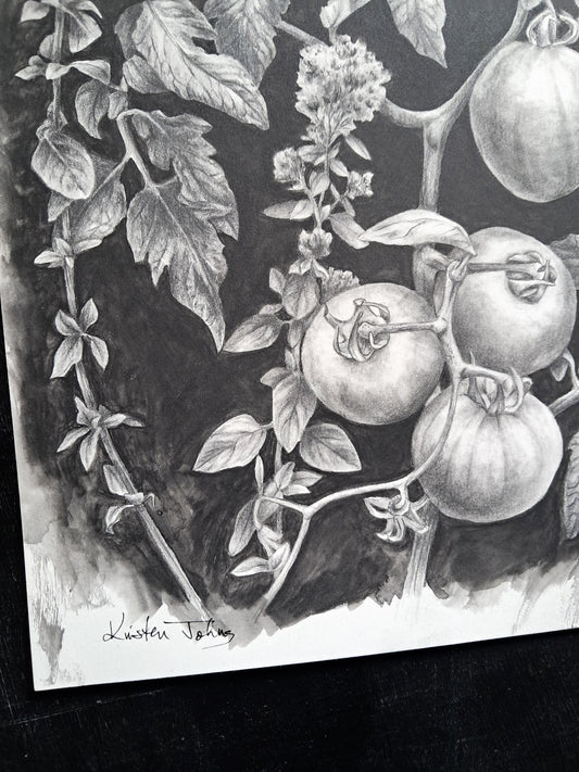 Tomatoes and Oregano, an original drawing by artist Kristen Johns, 9x12 inch