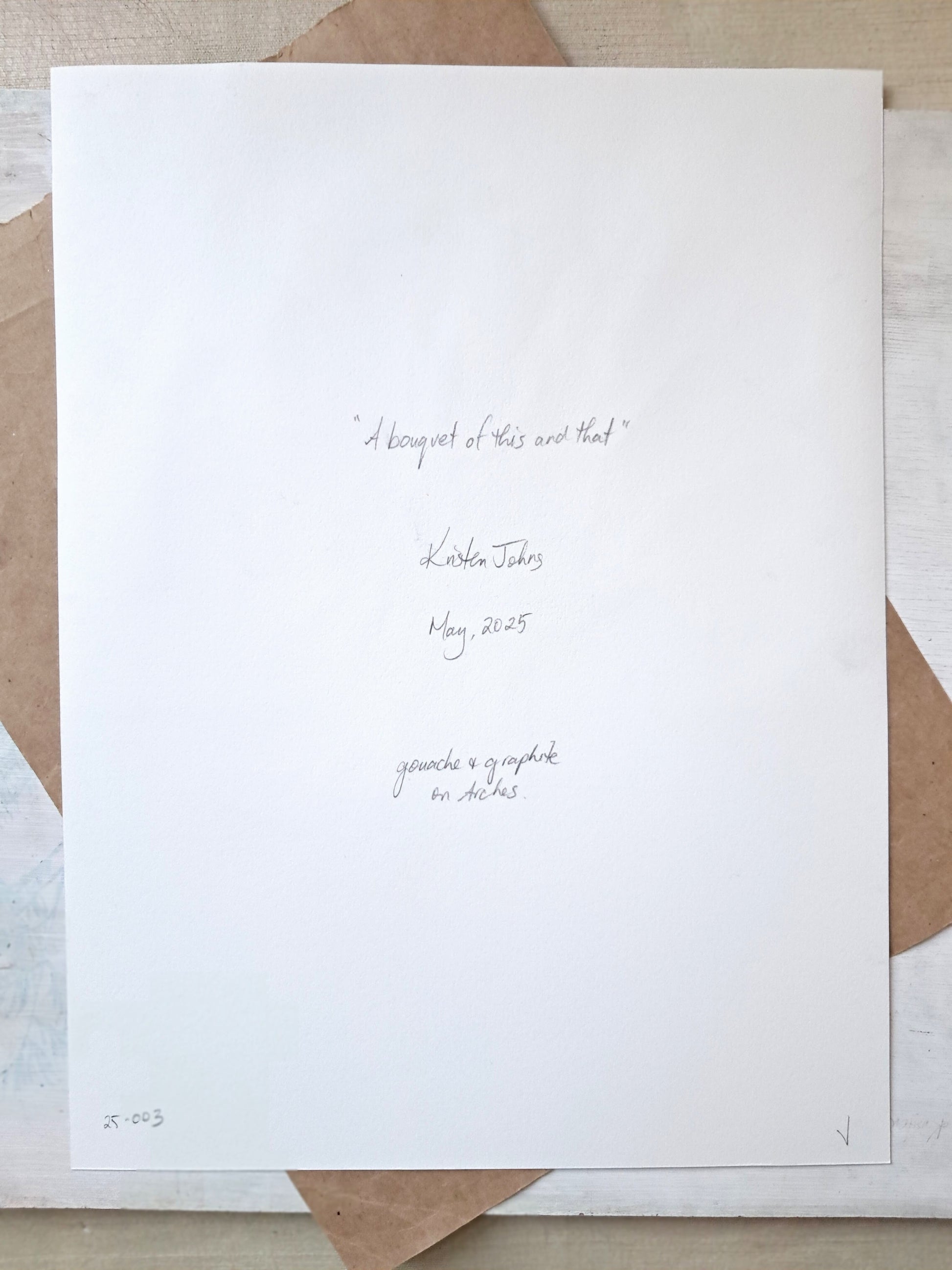 This is a painting of a small bouquet which I quickly foraged from my garden on a grey afternoon when I was needing a pick-me-up.